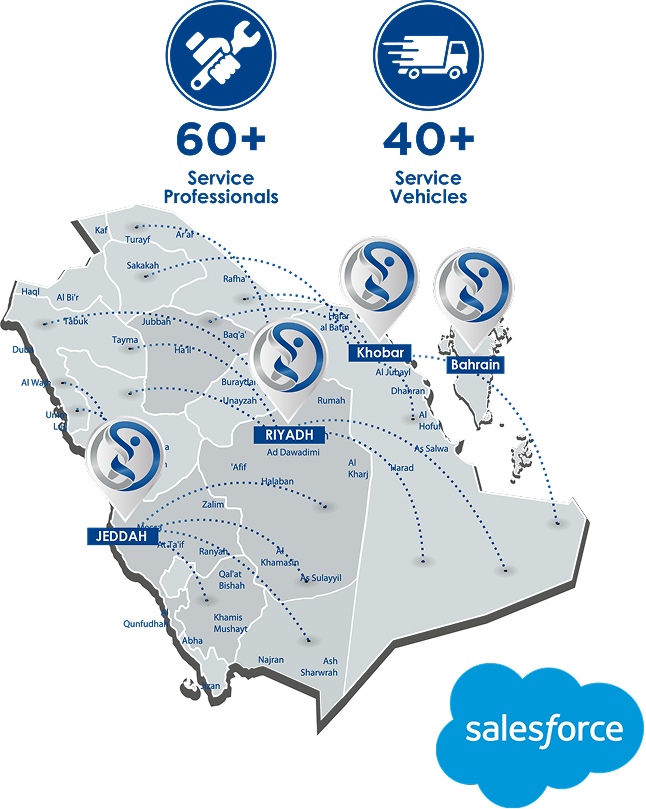 لدى دلتا فتنس فريق متخصص من المحترفين، يضم أسطولاً من 35 مركبة خدمة سريعة في جميع أنحاء المملكة العربية السعودية والبحرين، لتقديم خدمات التركيب والصيانة والحلول لأي مشكلة. يتولى مهندسو خدمة مدربون الرد على جميع المكالمات من نقطة الاتصال عبر الهاتف أو البريد الإلكتروني. في حال عدم إصلاح العطل فورًا، سيتم توفير جهاز احتياطي بنفس المواصفات مؤقتًا.