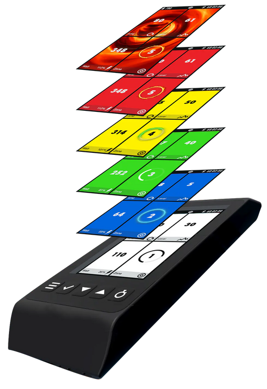 - Coach By Color® customizes ride experience based on different heart rate and power zones