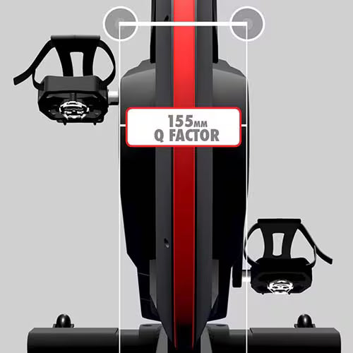 عامل Q بمقدار 155 مم يجعل دراجتك الداخلية تشعر وكأنها دراجة خارجية. كما يزيد من الأمان والراحة والكفاءة.