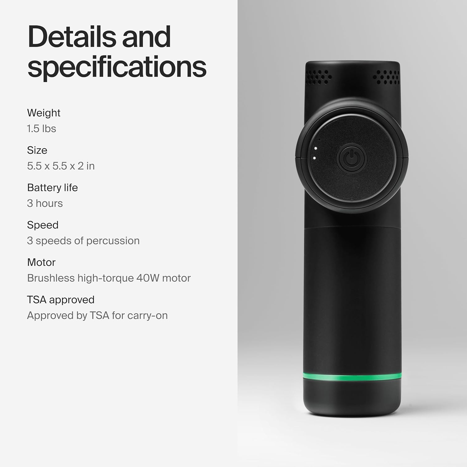 For convenience, it includes two interchangeable heads—ideal for both broad muscle groups and pinpoint trigger points—making it adaptable for shoulders, arms, back, legs, and more. With up to three hours of battery life and TSA-approved portability, it’s designed for on-the-move performance and recovery.