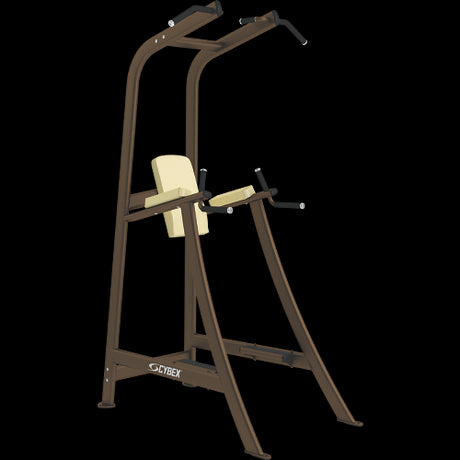 يتميز Cybex Dip / Chin / Leg Raise بوضع مائل قليلاً ومساند الكوع الزاوية لتوفير وضع آمن. تستوعب مواضع الثبات المزدوج حجم المستخدم وتوفر تنوعًا أكبر من الحركات. يوفر شريط السحب كلاً من المقابض والمقبض المحايد لتفضيل الفرد.