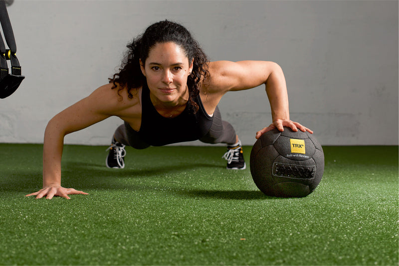 Grip it. Work it. Our TRX® Sand Disc, built with Kevlar®, has handy grips around the entire rim for better control. Use them just as you would a medicine ball, except now you can stack multiple for an extra challenge (and easily stack them when not in use). Made with durable Kevlar® for high-impact training, this weighted disc is the toughest and only reinforced disc on the market, and lets you break a sweat with every move in a size that fits easily in a travel bag. Filled with soft steel sand to maintain its shape and reduce shifting.