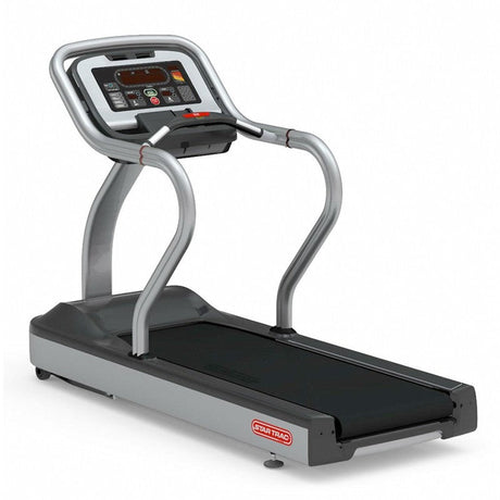 Pre-wired for the S Series PVS entertainment system and powered by a 5-HP AC motor, the Star Trac STRc treadmill features a user-friendly console and keypad with a large service scrolling message window, user-specific workout programs, a dedicated heart-rate display, Polar telemetry, and multiple cup and accessory holders. The Soft Trac triple-cell cushioning system provides maximum shock-absorption, and centered dual-adjustable personal fans enhance comfort.