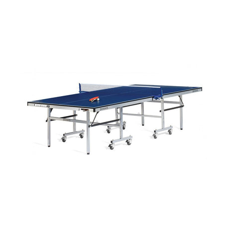 Our mid-range model features a dynamic blue playing surface with matching net and net clips. The 18mm-thick playing field provides great stability and performance while built in compartments grant convenient storage for the included two paddle / 3-ball accessory set.