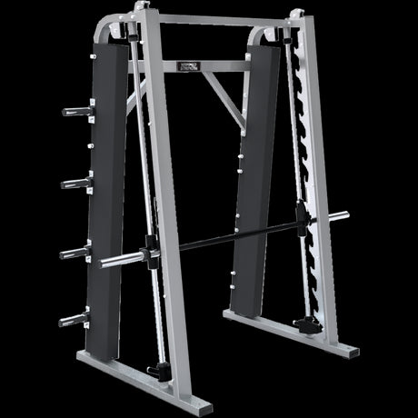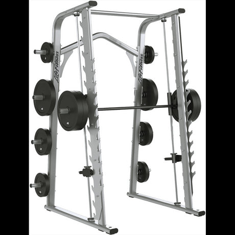 The Smith Machine bar path follows a seven-degree angle, which is the free weight motion of Olympic lifting — to give you the same workout environment as Olympic athletes.